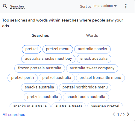 Keywords with high search volume, and low-competition were prioritized to achieve better CPC efficiency and maximise exposure within the campaign’s budget. At the same time, I excluded negative keywords such as “homemade pretzel,” “pretzel recipe,” and “pretzel jobs” to filter out irrelevant traffic and avoid wasted ad spend.