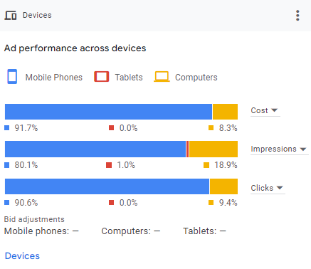 The campaign saw the strongest performance on mobile phones, which accounted for over 80.1% of impressions and 90.6% of clicks, highlighting the importance of mobile-optimized ads for our target audience.
